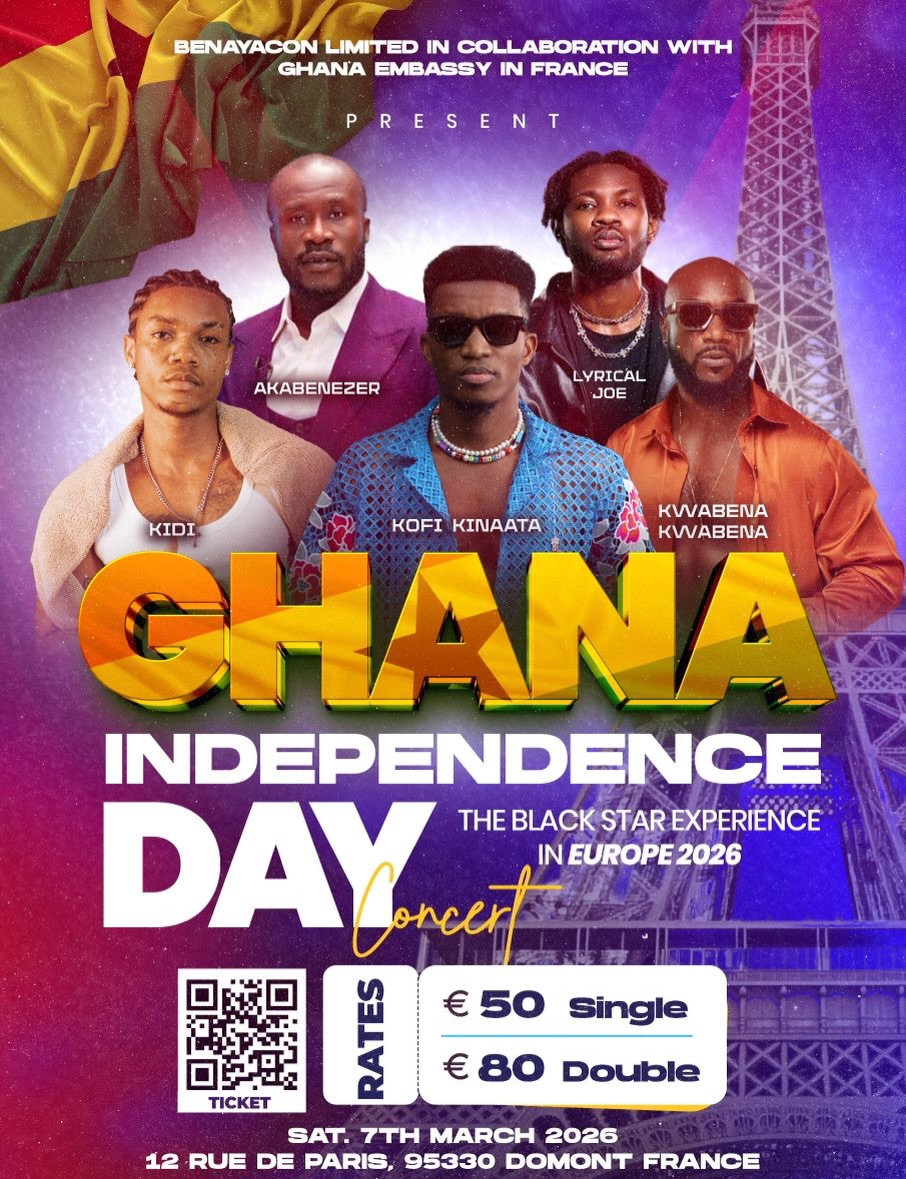 March 3, 2026It’s the 2026 Official Ghana Independence Day Concert – The Black Star Experience, France Edition 🇫🇷 This event is powered by 🇬🇭 Ghana’s Embassy in France. Come let’s celebrate Ghana’s History, Music & Culture.