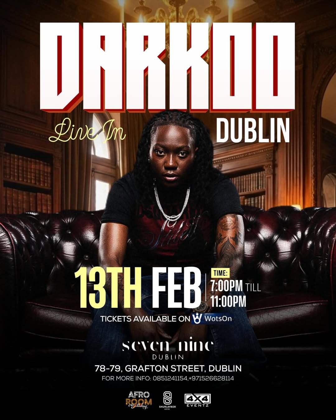 January 18, 2026Darkoo performs live at Dublin’s Seven Nine on Grafton Street, bringing the best of UK Afrobeats to Ireland.